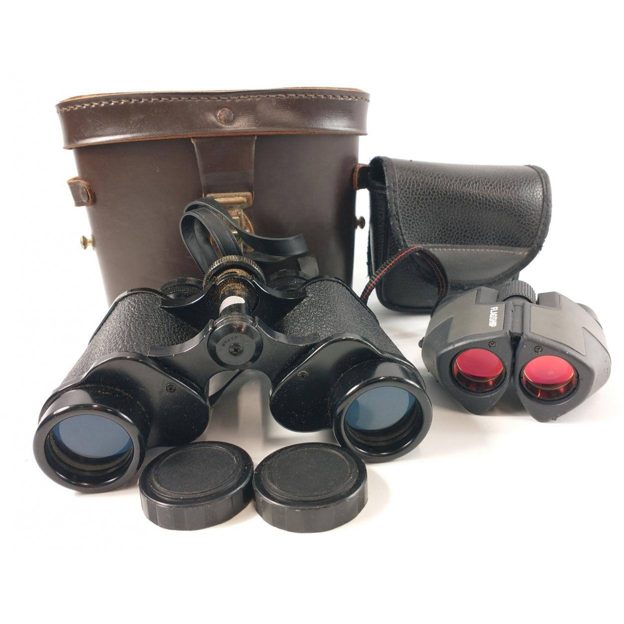 A pair of LIZARS LOMOND binoculars 8x30 field 7.5. (No 2905) with leather case and also an 8 x 22 compact FLAGSHIP set in travelling case