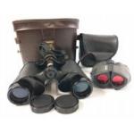 Two pairs of WRAY of LONDON 'Wray' 8 x 40 binoculars complete with leather case and a pair of TASCO 2012 12x50mm zoom focus binoculars with case,