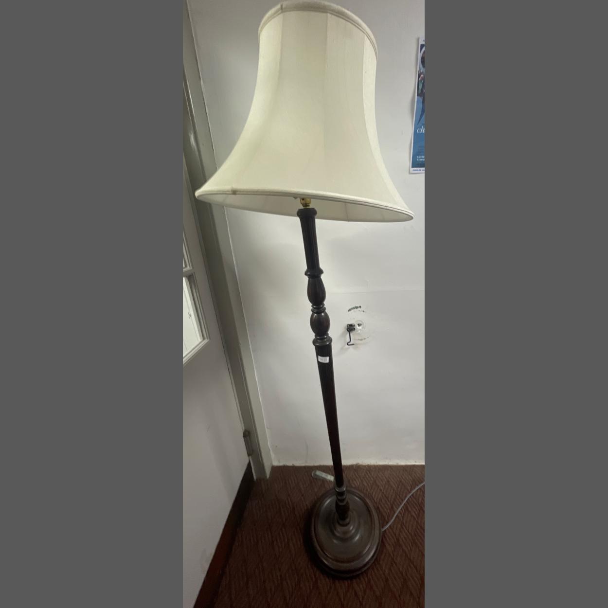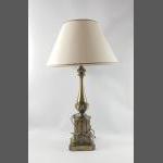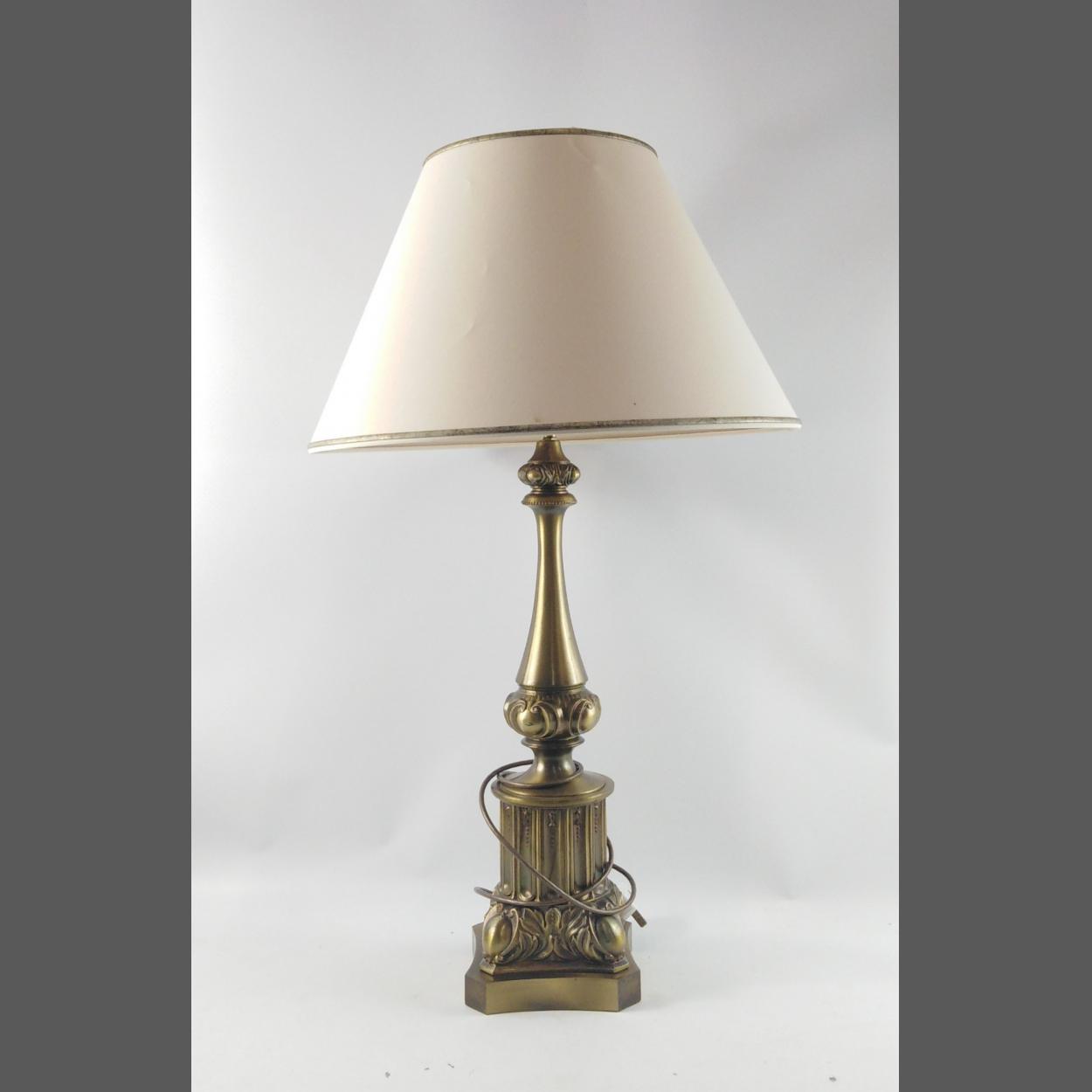 A SUBSTANTIAL metal brass-look table lamp stands approx 80cm tall