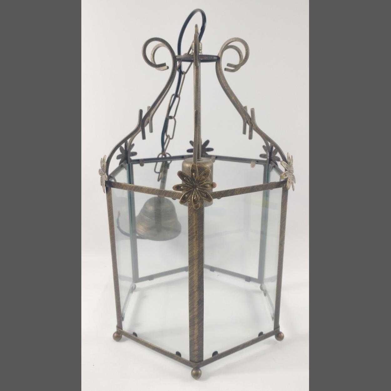 A charming hexagonal glass panelled ceiling light height 42cm height x 25cm diameter - would make a delightful addition to any home!