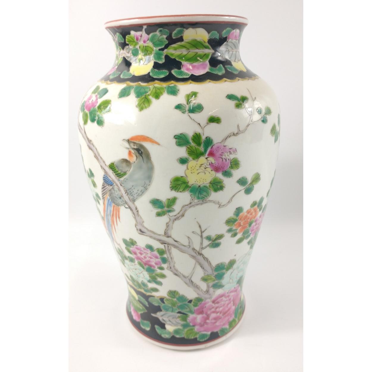 An ORIENTAL and DECORATIVE themed famille rose large vase - dimensions 25cm height x 15cm width approx