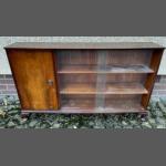 A c1960's RETRO teak floor bookcase half glazed half cupboard 4.5ft length x 10"depth x 3ft height approx