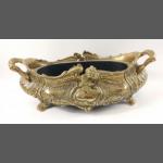 An ORNATE large, oval brass plant holder with liner 42cm long, inner measurement 27x15cm