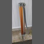 A vintage chimney sweep's brush along with 12 extension rods