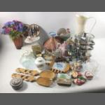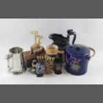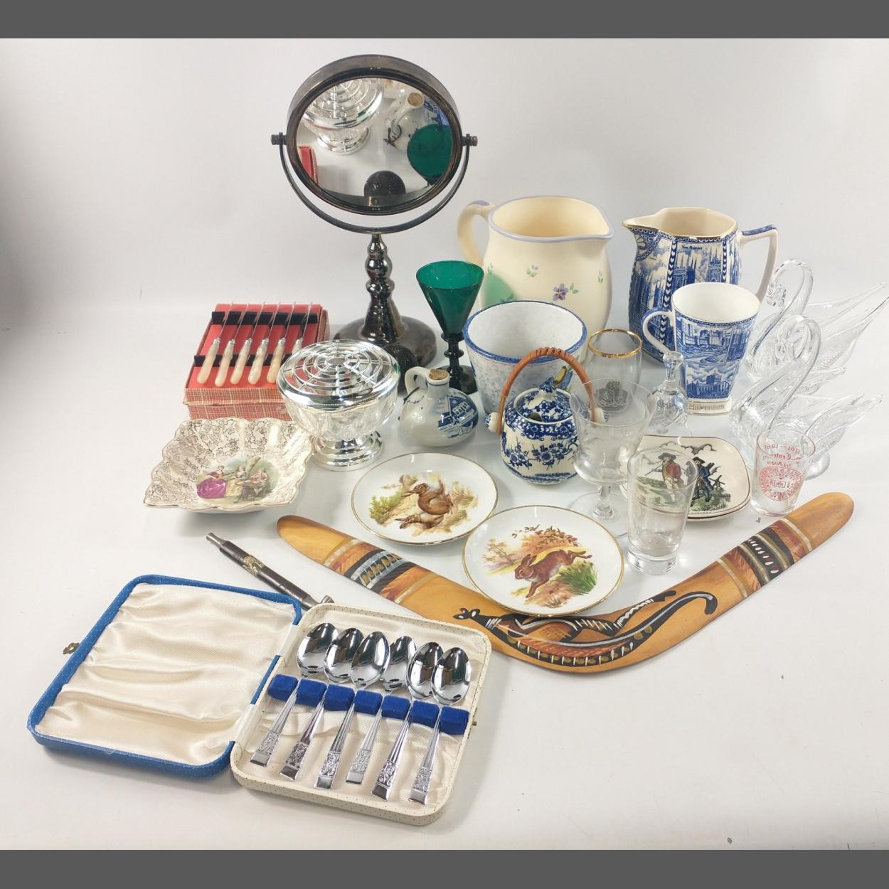 A mixed lot to include a boomerang with a kangaroo depicted, a magnifying mirror (33cm tall), a jug (16cm ) and a hand-painted Italian plant pot (10cm) plus various ceramic and glass items