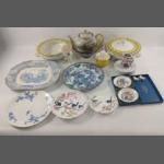 A mixed box with lots of china to include a JERSEY POTTERY covered butter dish, a WEDGWOOD Girl Guides diamond jubilee dish (11cm), a floral design vase by ROSENTHAL Studio Linie (15cm tall), a WEDGWOOD 'Chinese Legend' dish (16.5cm dia) and much, much more