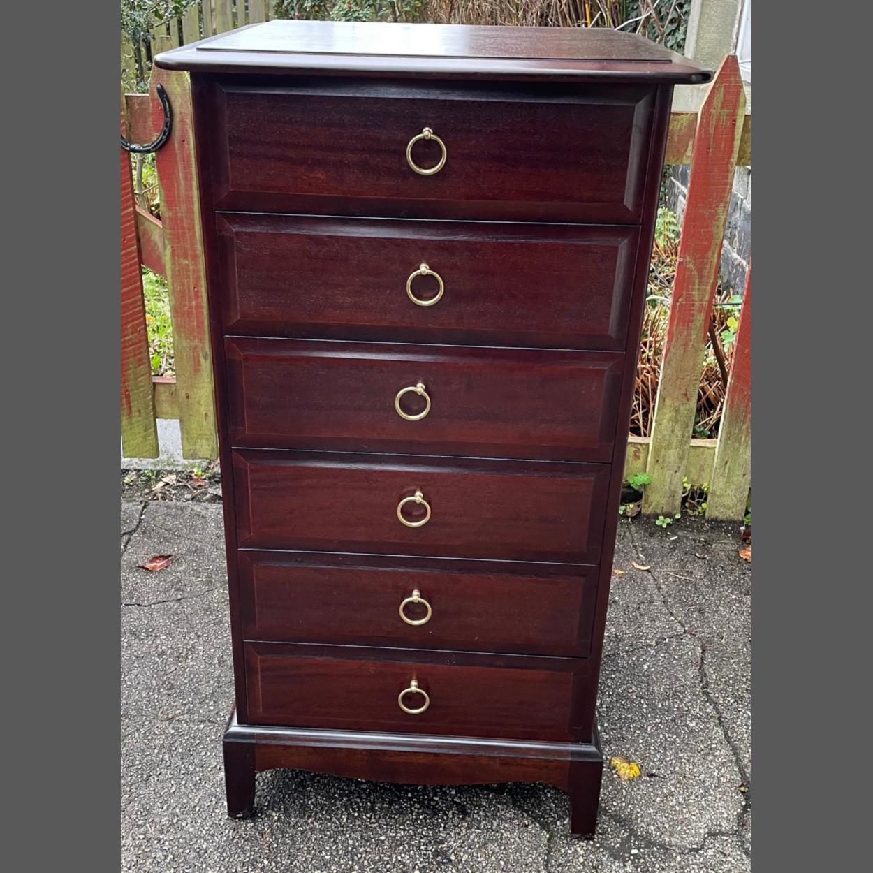 ROBUST! A tall slimline STAG 6 drawer chest of drawers 18” x 18” approx square top x 3ft approx