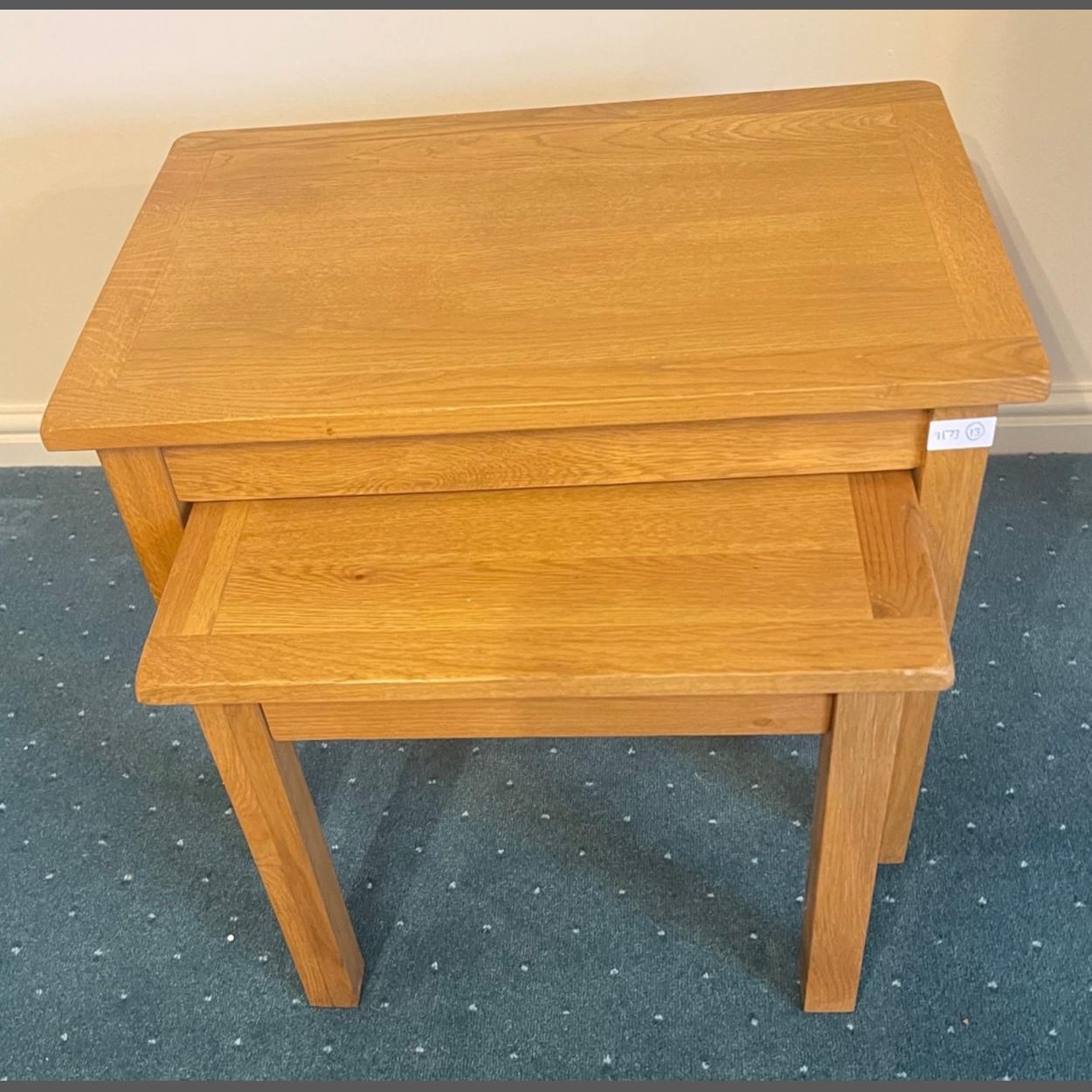 A set of two nest of tables in light oak - largest oak table dimensions 2ft x 18”