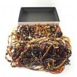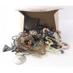 A box of costume jewellery to include chunky necklaces, strings of beads and more