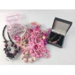Pretty in pink - a lovely jumble of pink costume jewellery including chains, beads and necklaces