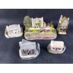 A small collection of model village decorative pieces by Lilliput Lane, Leonardo, Fraser Creations, Nice lot in good condition.