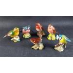 A super lot of six small BESWICK bird ornaments, all in good condition to include, 2105 Greenfinch, 993 Wren, 980 Robin, 992 Blue Tit, 1042 Bullfinch (minor chip to wing tip) and 980 Robin. A great little flock.