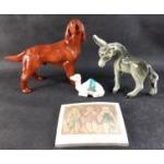A group of three ornaments - A COOPERCRAFT red setter, A COOPERCRAFT donkey, a crested camel from Carlops, and a decorative plaque.
