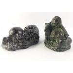 Two nice examples of Inuit Native art sculptures from Canada. One an Igloo group 17cm across by NUVUK Canada and the other A WOLF ORIGINAL with naïve figure and two wolves.