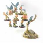 A collection of seven BORDER FINE ARTS KINGFISHER bird ornaments. Includes a 19cm largest diving Kingfisher which is an older Scottish made one. A0656 with slight damage to branch