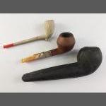A silver hallmarked mounted ARCADIA pipe in a case, some wear to mouthpiece. Also includes a clay pipe.