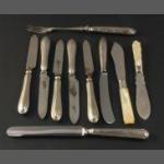 Mixed silver hallmarked items to include eight silver handled knives and two silver bladed knives and two hallmarked mother of pearl handled knives. Total gross weight 259g approx