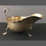 A fully hallmarked sterling silver sauce boat with hallmarks for Sheffield 1926. Measures 16cm across approx and weighs 125g approx.