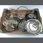 A box of silver plate to include teapots, coffee pots, salvers etc