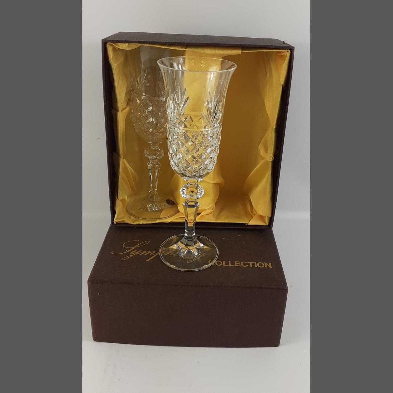A boxed pair of BOHEMIAN crystal champagne flutes from the Symphony Collection