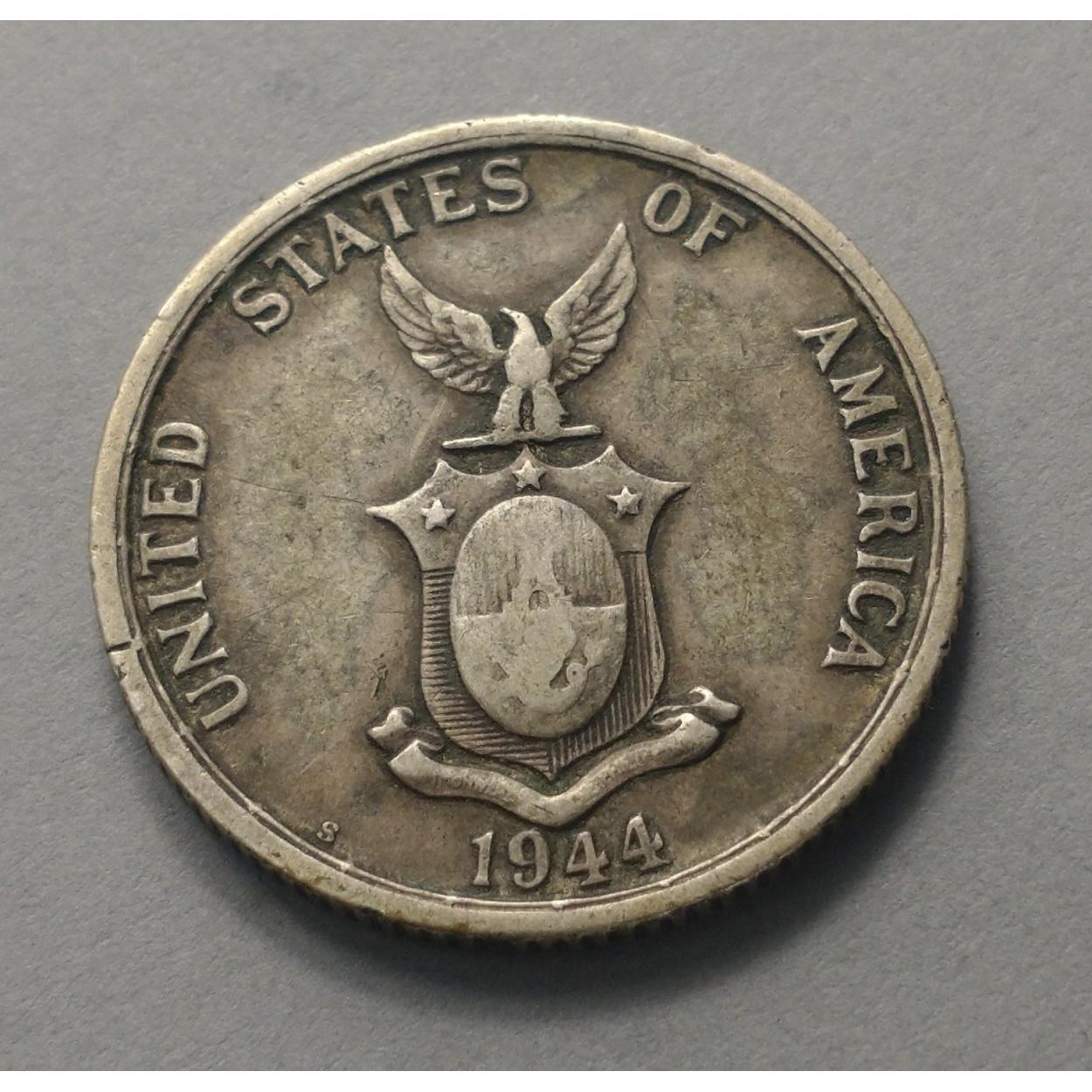 An unusual coin of numismatic interest. A 1944 PHILIPPINES silver 50 centavos coin. Nice coin with wear to high spots but a very collectible grade.