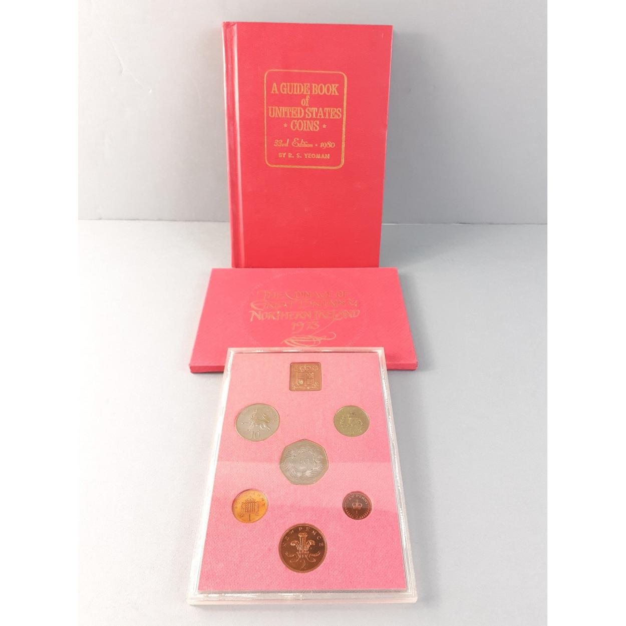 USA Coin Guide Book - THE RED BOOK. 33rd Edition 1980, also a 1973 Royal Mint UK coin year set in good order.