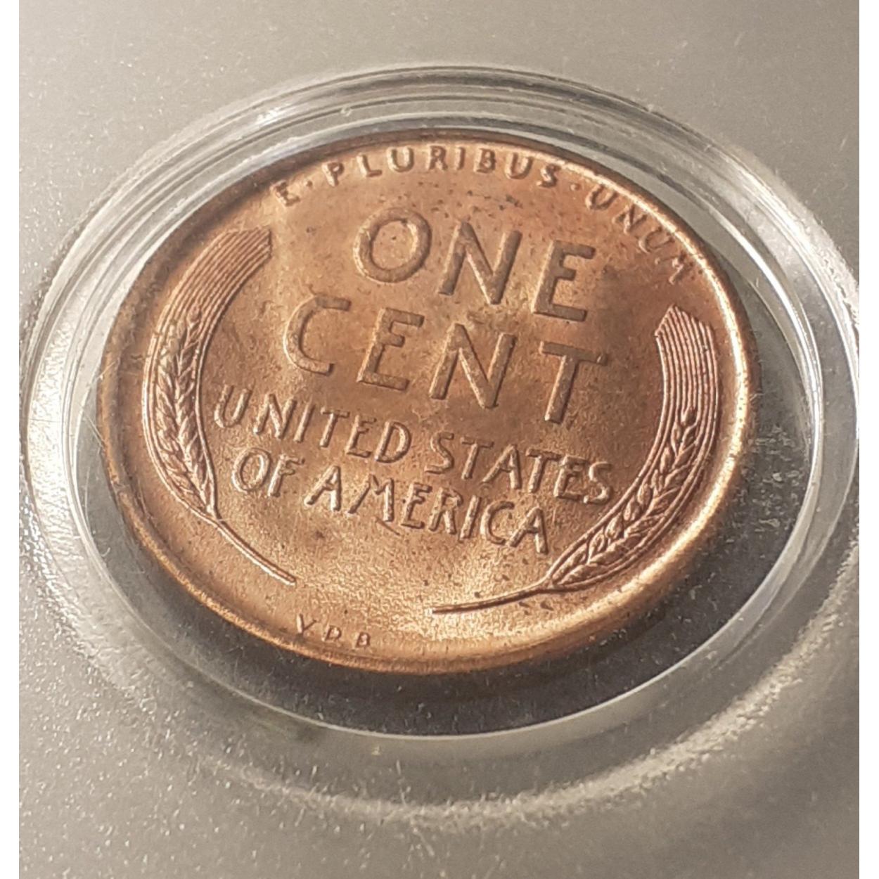 A rare very high grade UNITED STATES 1909 Lincoln Head 1 cent coin, wheat ears reverse and VDB initials for engraver V. Brenner. Outstanding coin with lustre in older coin capsule.