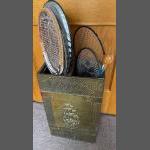 A NICE EXAMPLE of an EDWARDIAN OAK and brass fireside coal purdonium complete with small coal shovel - dimensions 18" depth x 14" height and 12" wide approx