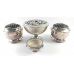 A collection of silver plate rose bowls, the tallest, by ORMEROD, being 15cm, also a pair 13cm high approx and a small plastic lined bowl by VINERS 11cm dia x 6cm high