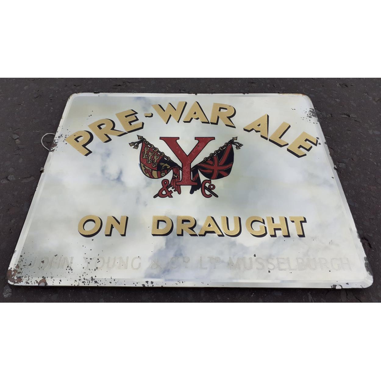 A vintage 'PRE-WAR ALE ON DRAUGHT John Young & Co Ltd, Musselburgh pub mirror 51x40cm. Some wear to edges