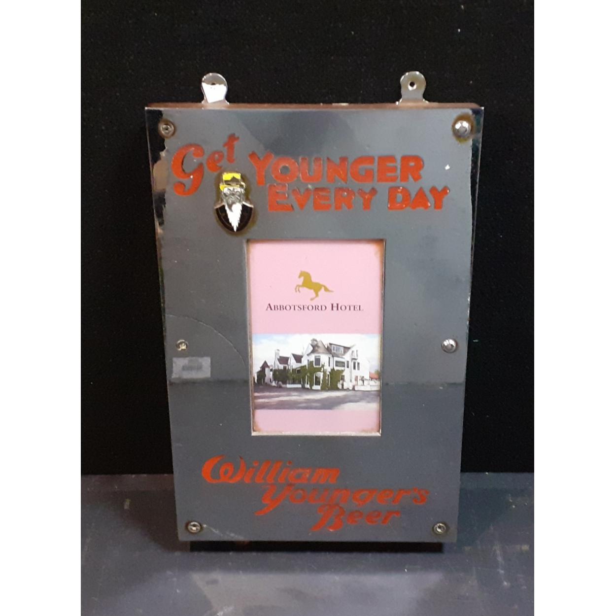 An original WILIAM YOUNGER hotel/pub advertising menu holder in heavy chrome 48x30cm approx