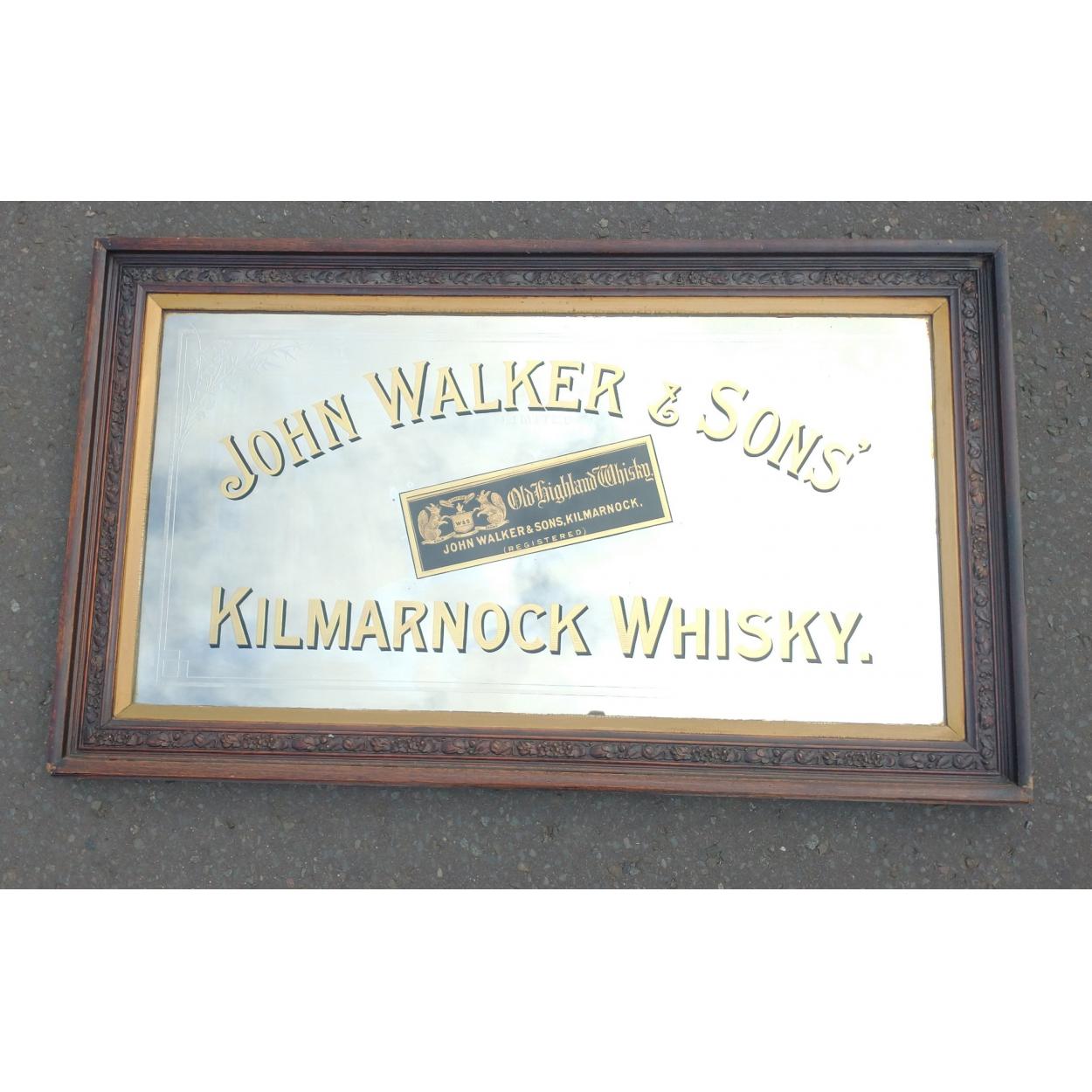 RARE LARGE RECTANGULAR (not the common square one!) framed oak hand carved JOHN WALKER & SONS KILMARNOCK OLD HIGHLAND WHISKY c1902 pub advertising mirror showing the coat of arms inset - dimensions 125x74cm approx The Old Highland Whiskey was rebranded in 1909 when John Walker & Sons company began to use Johhnnie Walker name and the striding man and onto coloured labels for each brand of Johnnie Walker whisky.