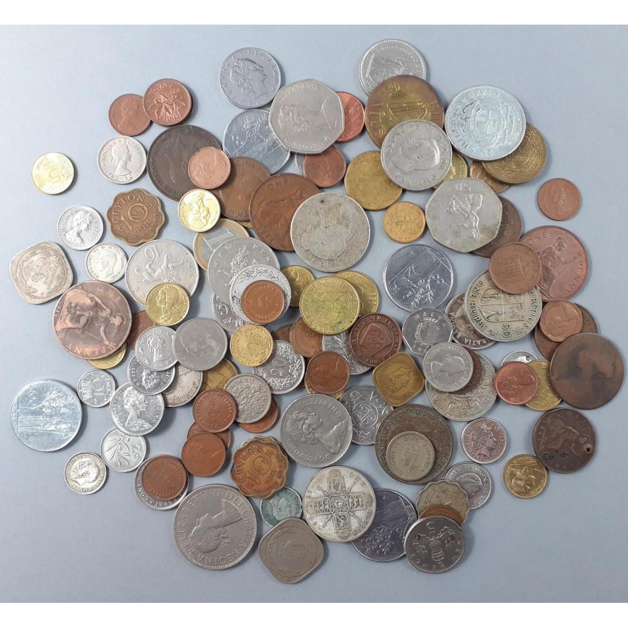 A quantity of UK and world obsolete coinage. Does include a few silver coins (min 0.500) totalling around 34g