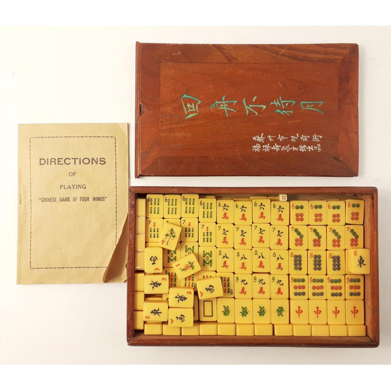 Beautiful wooden Mahjong set with instructions - in good condition.
