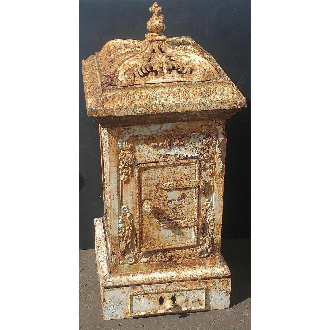 A rare and SUBSTANTIAL VICTORIAN greenhouse heater. Stands 115cm to top of finial, W50xD50cm. A great character object. - this items dis-assembles into 8 or so pieces