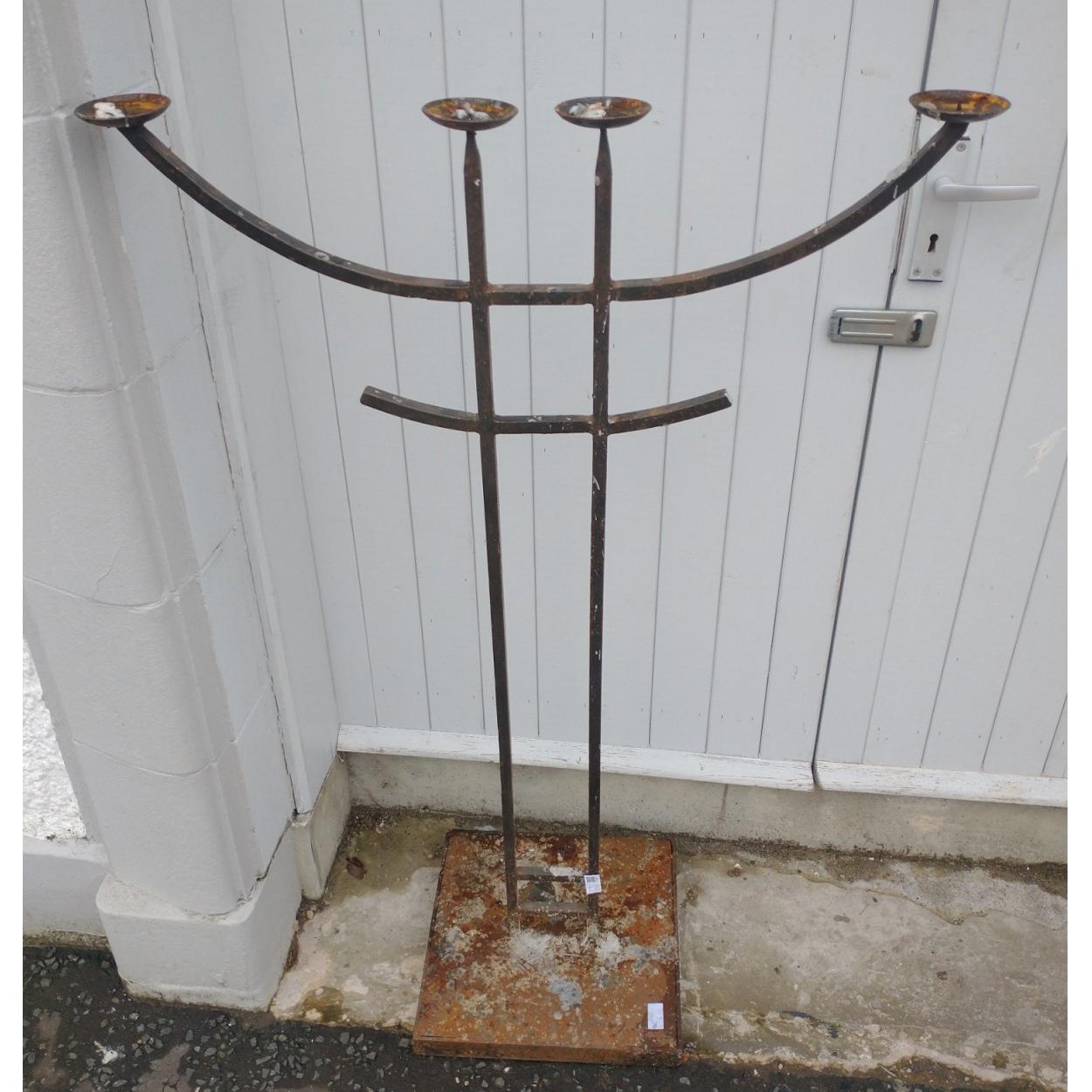 A substantial large cast candle holder stand. Takes four candles and stands an impressive 120cm tall. A lovely rustic feature for patios and gardens.