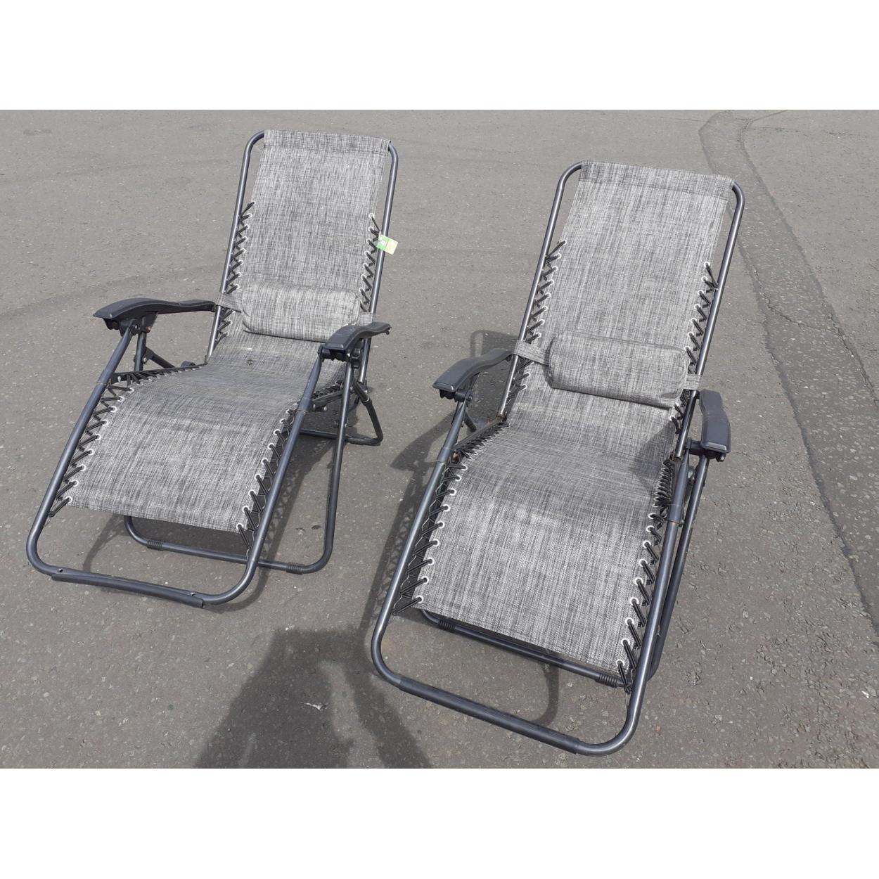 Two black/grey Zero Gravity sun loungers