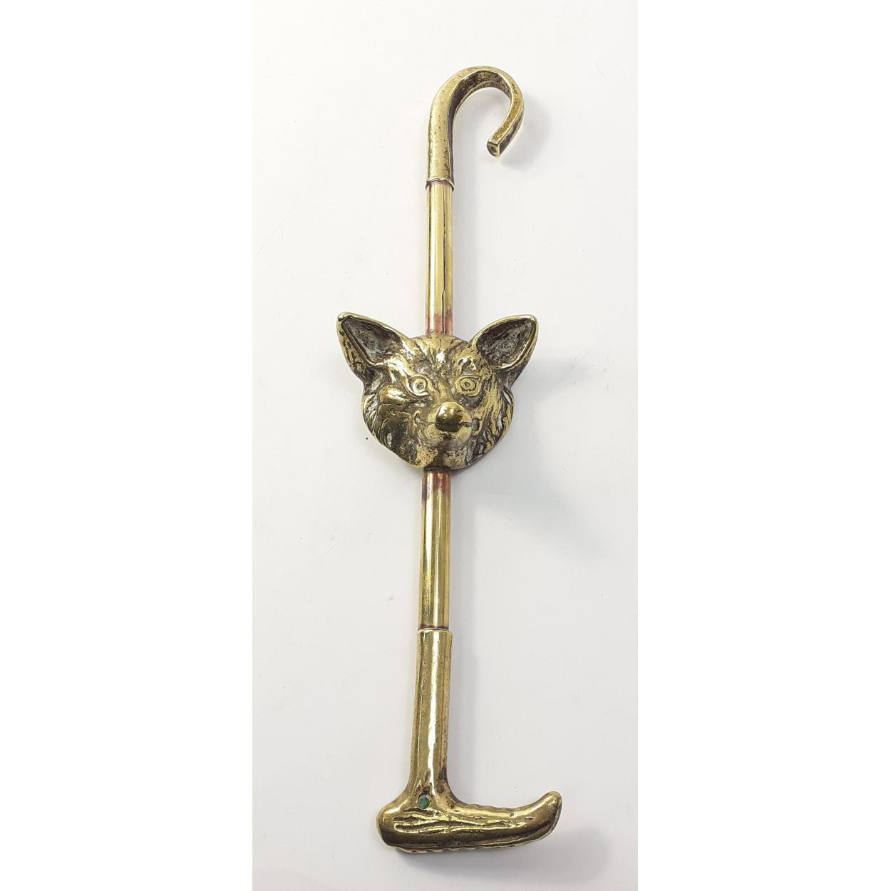 A brass riding crop with a nicely detailed fox's head, 31cm long approx