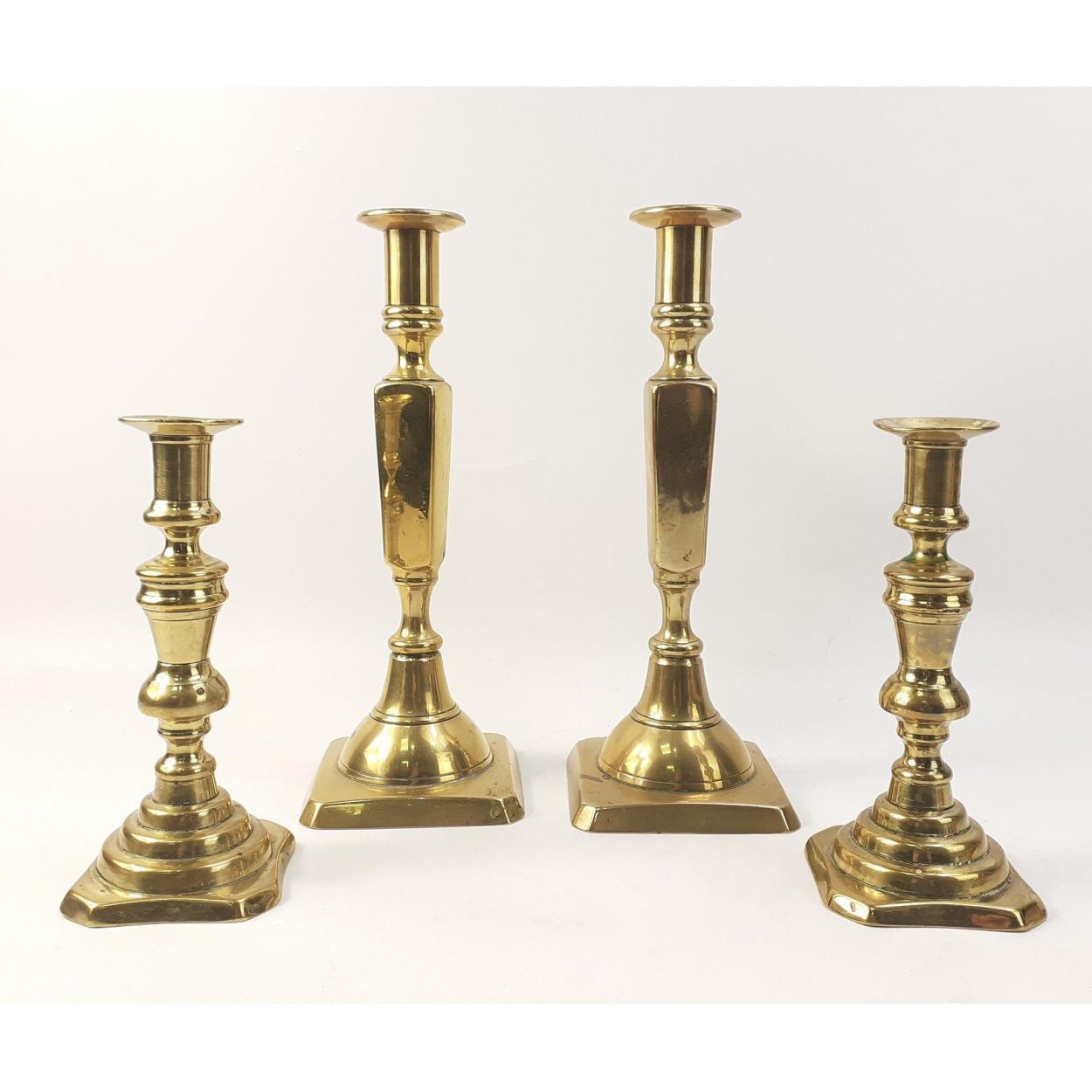 Two pairs of brass Georgian candlesticks - tallest pair 12" tall and the smaller pair 8"..