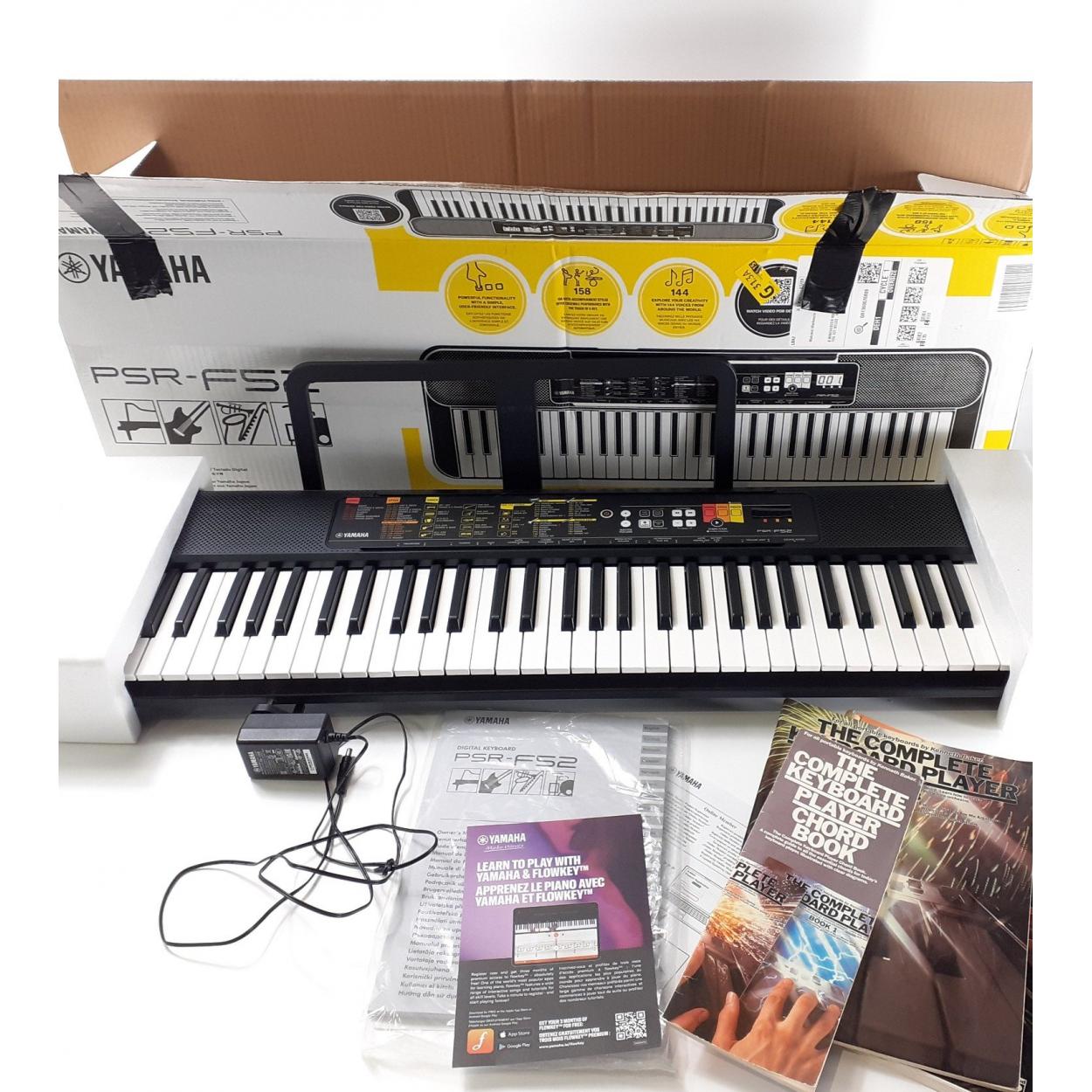 A Yamaha PSR - F52 electronic music keyboard in box, complete with mains, cable, books etc.
