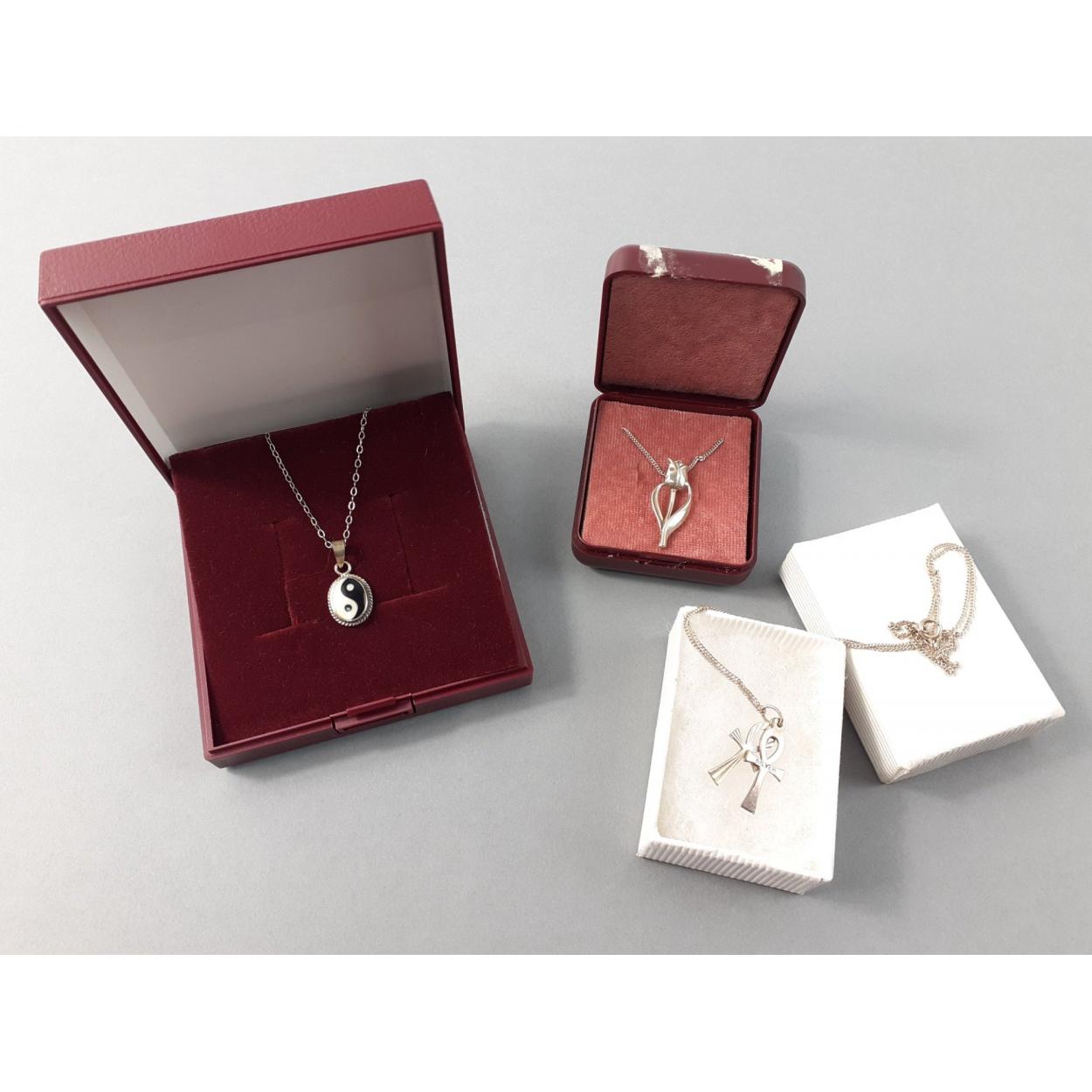 A small silver jewellery collection to include a tulip style pendant, a Yin & Yang pendant on a chain, two small ankh pendants on chain. Pretty pieces.