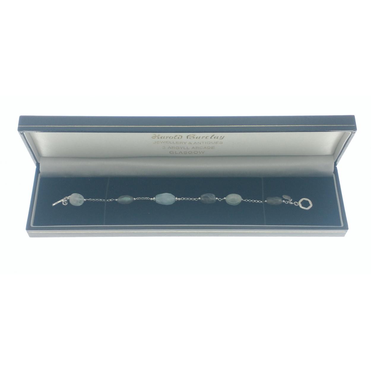 A 925 stamped bracelet set with 6 tones of blue stones, 18cm long approx