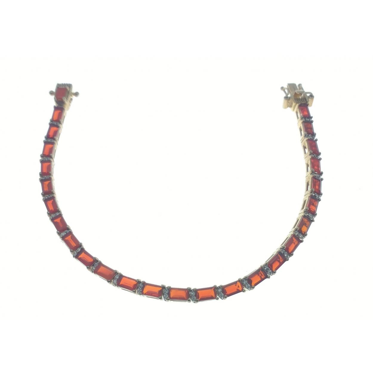 A TJC gilt tennis bracelet stamped 925 set with 26 orange stones with diamond chips between each link, 18cm approx
