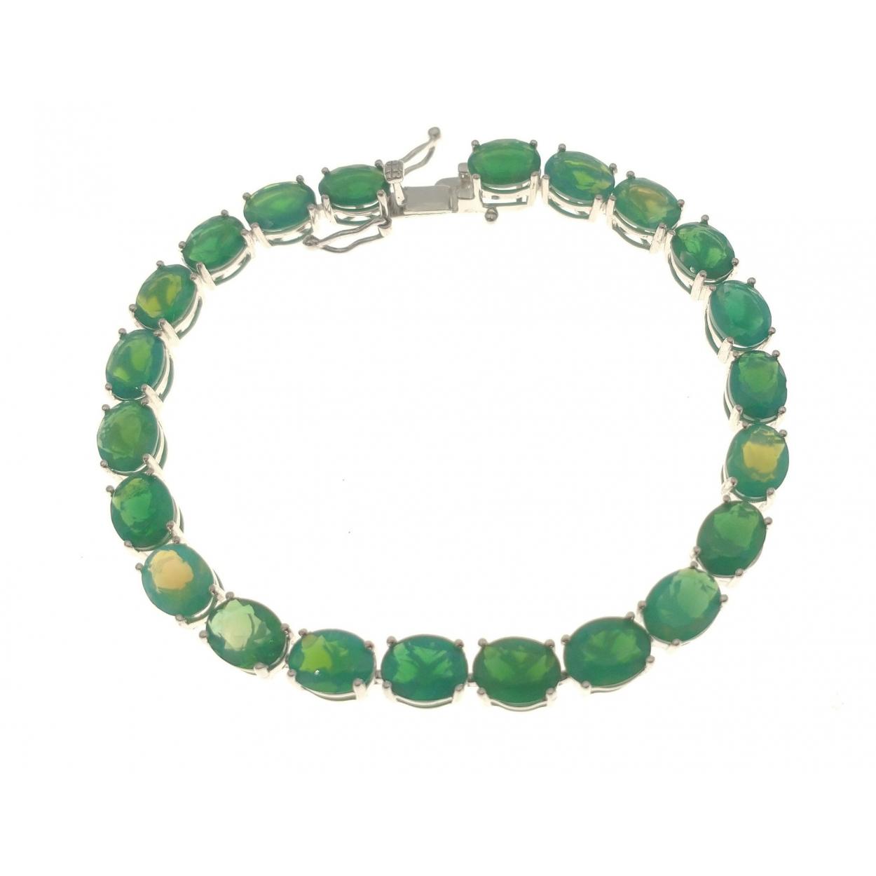 A pretty tennis bracelet 19cm long set with 22 green stones stamped 925 TGGC,