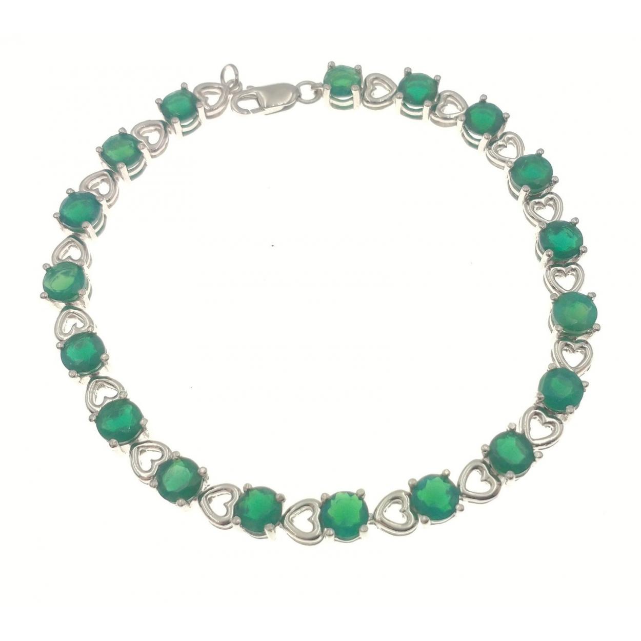 A 925 TGGC tennis bracelet set with green stones interspersed with hearts, 19cm approx