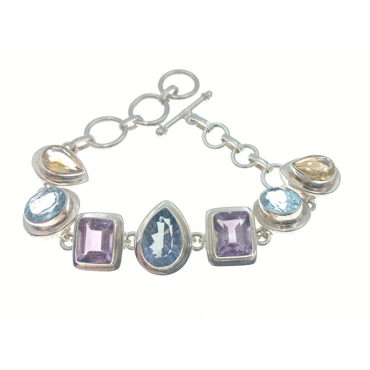 A 925 silver bracelet 18cm approx, attractively set with 7 very pretty coloured stones