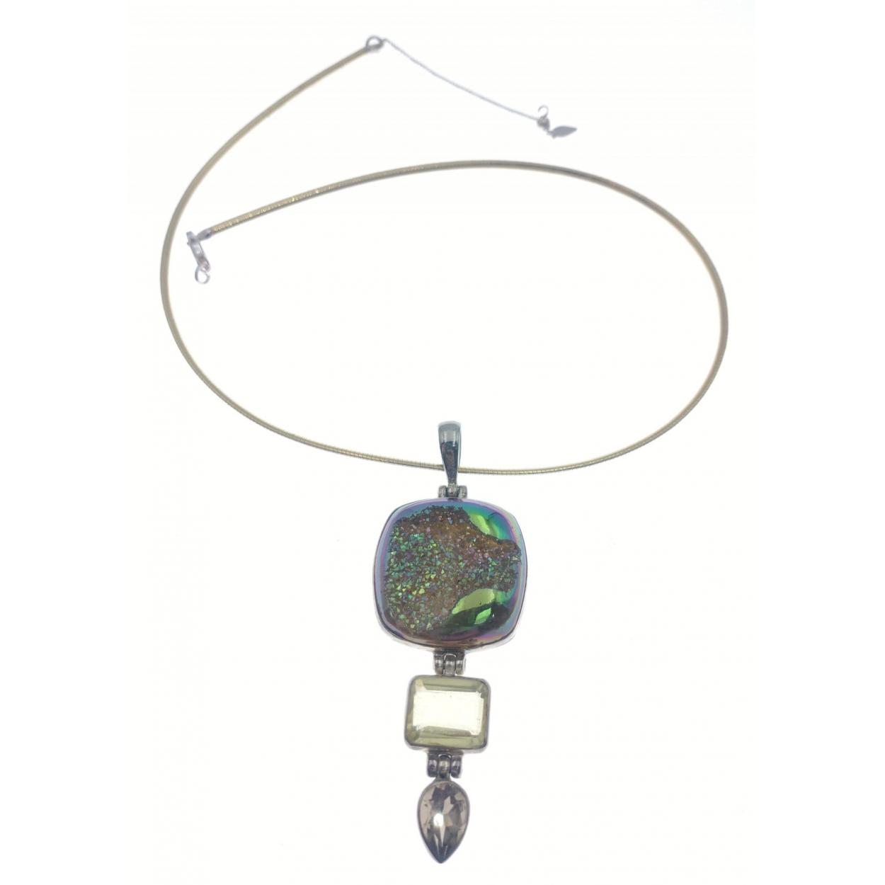 An eye-catching pendant stamped 925 set with 3 large blue stones, length 7cm approx