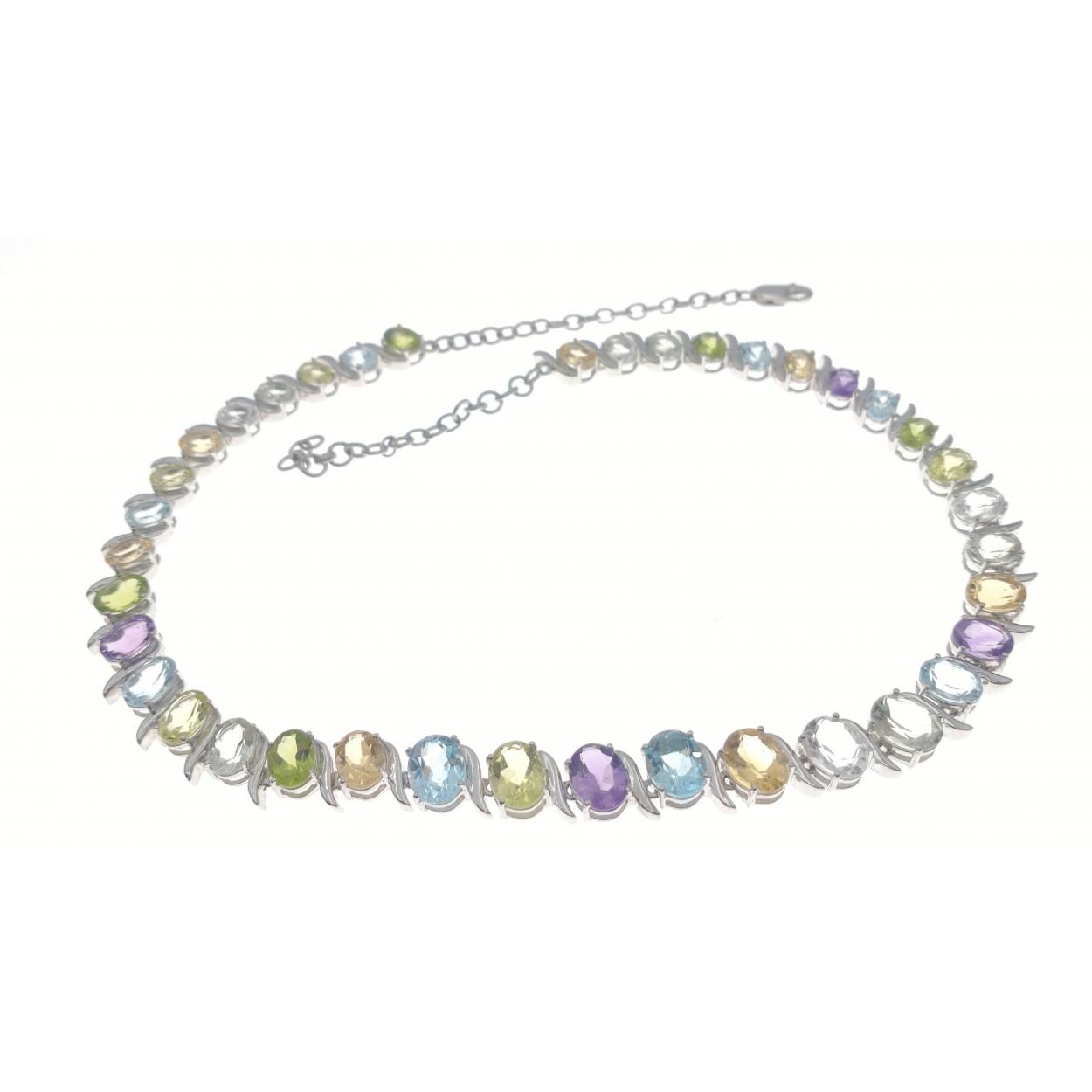 A pretty 925 silver necklace set with lovely JAIPUR coloured stones, 45cm long and in lovely condition, all stones intact