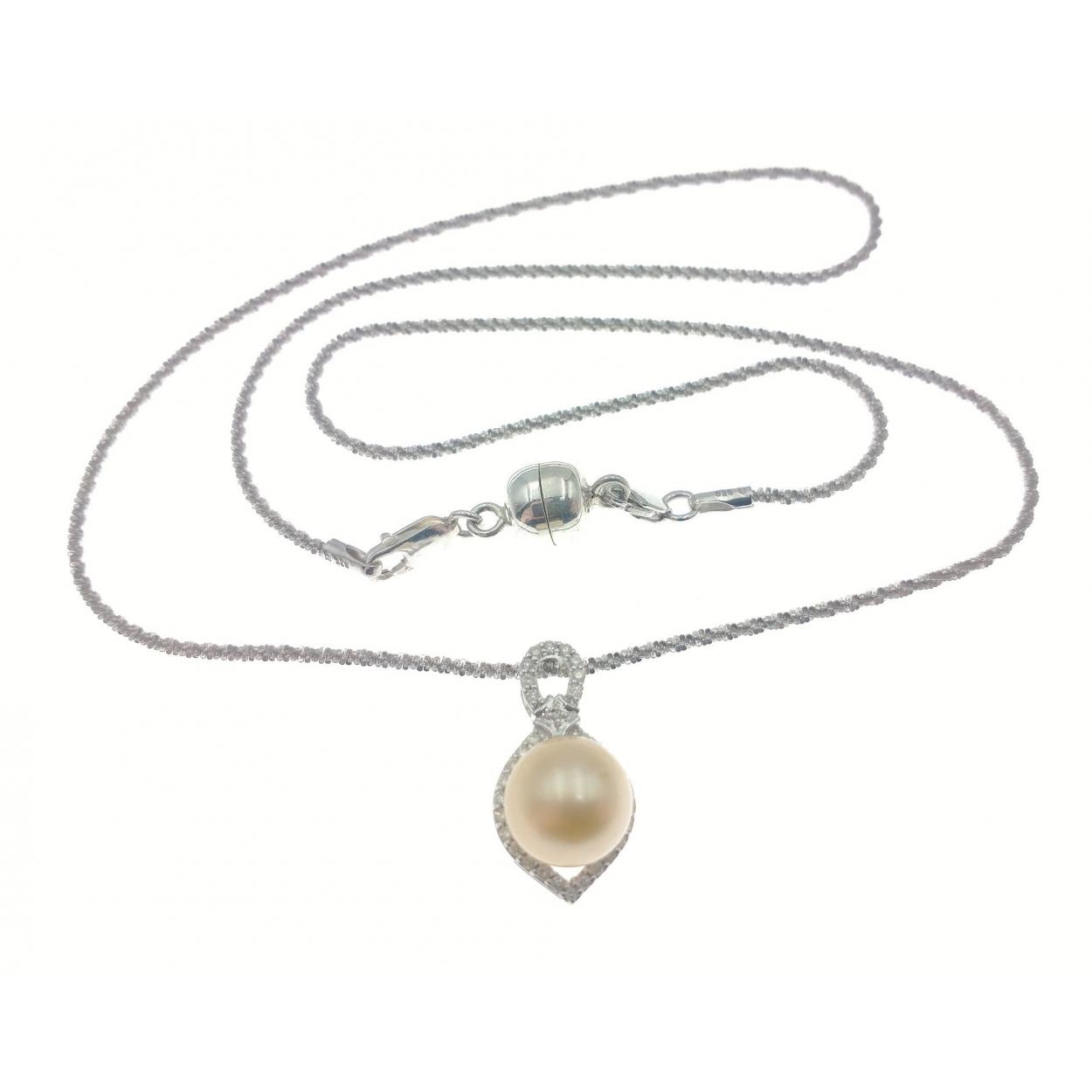 A 925 necklace with a pearl pendant on a 50cm magnetic clasp chain