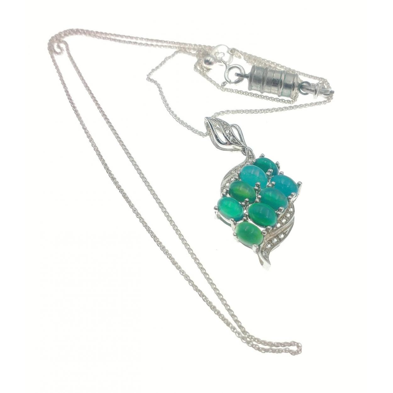 A SUPER QUALITY 925 TGGC silver necklace and pendant with green stones, 46cm long approx